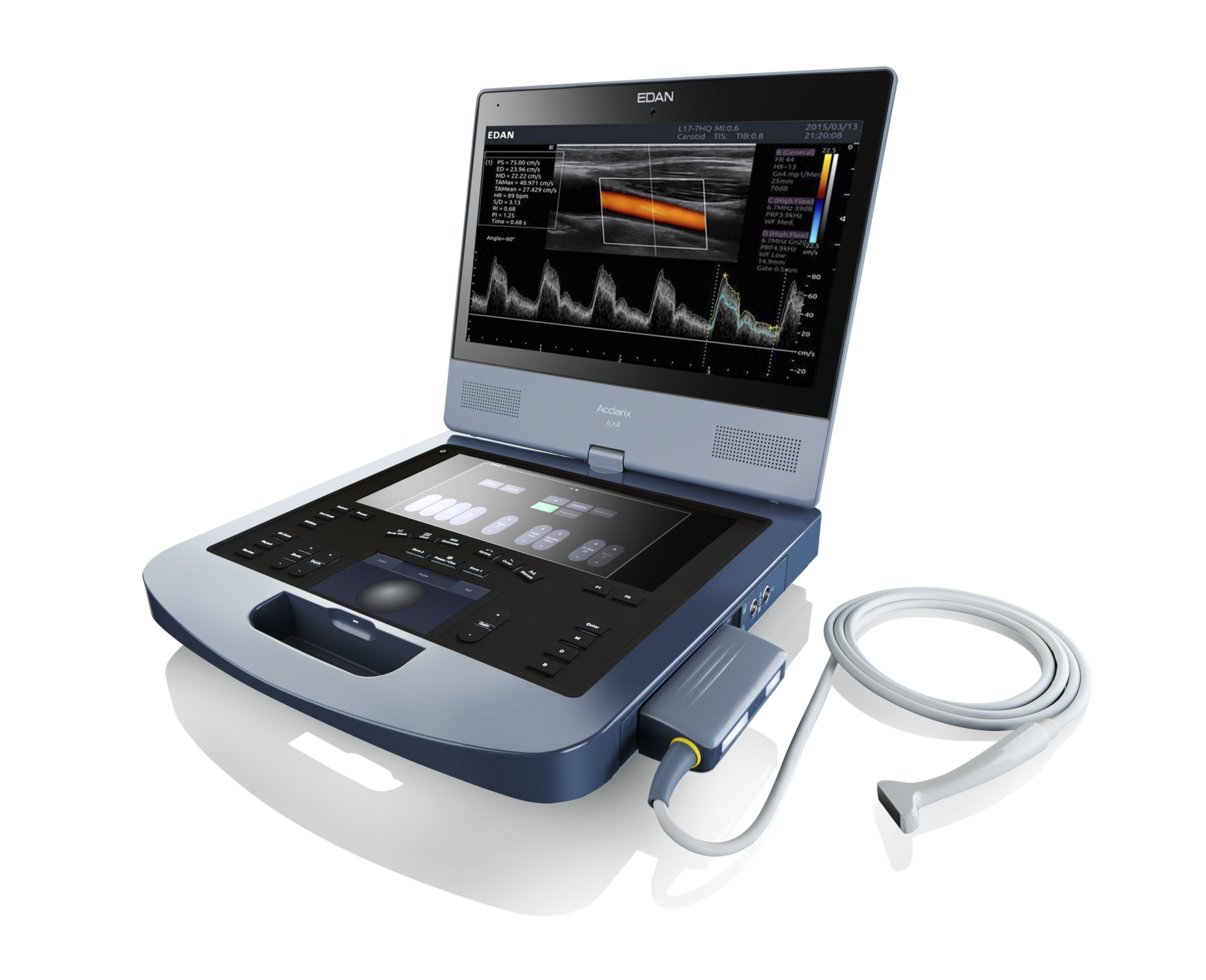 По габаритам Acclarix AX4 не превышает стандартный ноутбук. Портативный дизайн и легкий вес позволяют упростить транспортировку. Специалист может нести его в руке или в специальной сумке. УЗИ-аппарат не требует много места в машине врача. Теперь исследование пациента можно проводить прямо на месте. Аппарат идеально подходит для нестандартных условий.